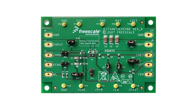 Evaluation Kit - MC34673, 1.2 A High-Input-Voltage Charger for 1-Cell Li-Ion/Li-Polymer Batteries.