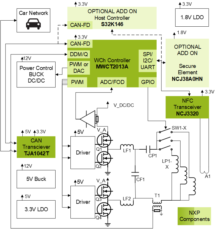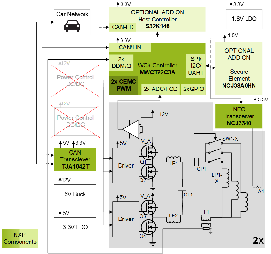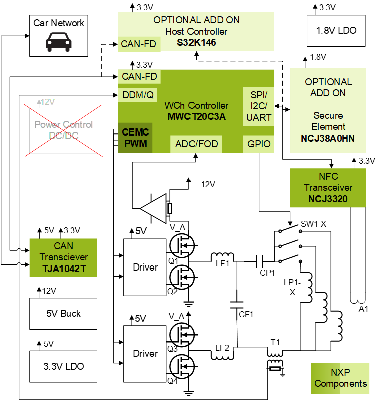 2nd generation of NXP wireless charging transmitter analog performance ICs with updated peripherals and optimized power consumption. The series of MWCT22C3A/MWCT20C3A/MWCT2013A provide complete controller functionality to implement a wireless charging transmitter in an automotive environment.