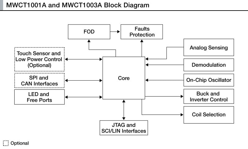 The NXP® MWCT1001A and MWCT1003A multi-coil wireless charging transmitter ICs provide complete controller functionality to implement a wireless charging transmitter solution in an automotive environment.