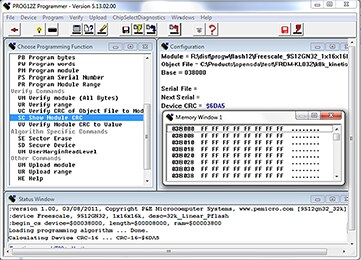 PROG12Z also includes the command-line version of the programmer software, called CPROG12Z, which allows scripted programming. Together PROG and CPROG are useful for development, production line programming, or field firmware upgrades. For a more full-featured production solution, P&E also offers a stand-alone, in-circuit flash programmer called the Cyclone PRO that is ideal for production programming and field maintenance.