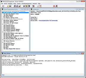 PROGS12ZZ also includes the command-line version of the programmer software, called CPROGS12ZZ, which allows scripted programming. Together PROG and CPROG are useful for development, production line programming, or field firmware upgrades. For a more full-featured production solution, P&E also offers a stand-alone, in-circuit flash programmer called the Cyclone PRO that is ideal for production programming and field maintenance.