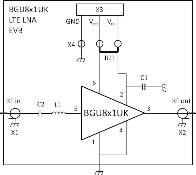 BGU8H1UK LTE LNA evaluation board.