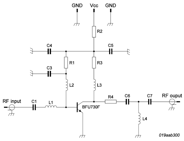 Low noise amplifier for 2.3 GHz to 2.7 GHz using BFU730F.