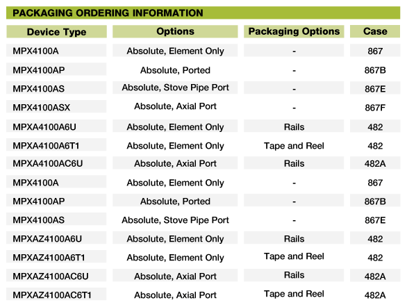 The MPxx4100 family series piezoresistive transducer is a state-of-the-art, monolithic, signal-conditioned silicon pressure sensor. This sensor combines advanced micromachining techniques, thin-film metallization and bipolar semiconductor processing to provide an accurate high-level analog output signal that is proportional to applied pressure.