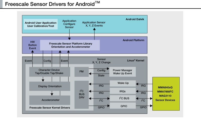 NXP® sensor drivers include a series of software drivers for NXP sensors used in consumer and industry applications. They support the Android™ operating system, Linux and other operating systems.